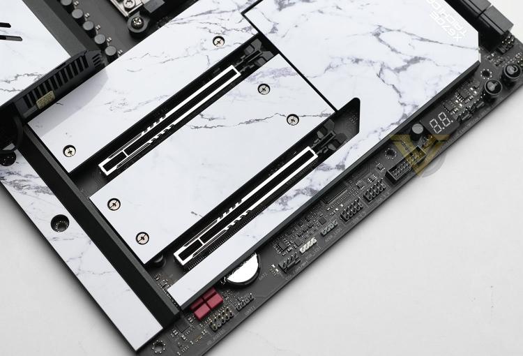 ASRock’s Taichi Carrara takes its name and aesthetic inspiration from a city in the Italian region of Tuscany. The white motherboard fascia has a marbling effect evocative of Carrara’s traditional export going as far back as ancient Rome, giving it a unique style all of its own. If supplied, the 120mm Carrara fan can continue this marbling look to the rear case fan position; unfortunately the fans themselves don’t appear to be sold separately.